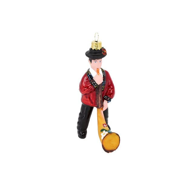 creanorm Glas Ornament Schweizer Alphornbläser, rot