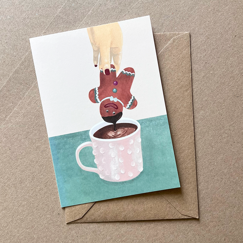 Diese festliche Weihnachtskarte zeigt eine stimmungsvolle Szene voller süsser Versuchungen – köstliche Schokolade, Gebäck und warme Winterfreude. Mit viel Liebe gezeichnet, ist sie die perfekte Karte, um persönliche Weihnachtsgrüsse zu versenden und die festliche Stimmung mit Familie und Freunden zu teilen.