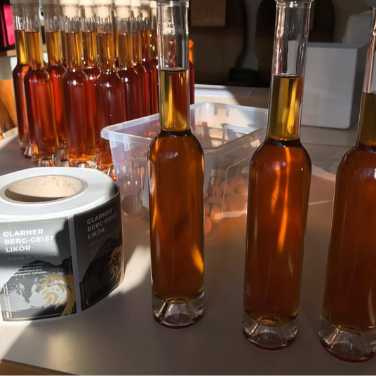 Ich freue mich sehr, euch meinen Glarner Berg-Geist vorzustellen. Ich bin Christine, die Tochter des Erfinders des köstlichen Likörs. Dieser wurde 1976 in unserer eigenen Konditorei Freuler in Glarus kreiert und produziert. Der Namensgeber ist der gleichnamige Brunnen, der gegenüber unserer ehemaligen Konditorei steht. Dieser Brunnen beruht auf einer Sage, die im Heimatbuch unter "dr Jäger und dä Berggeist" zu finden ist und sich auf einen tierschützenden Geist hinweist. Seit 5 Jahren bin ich alleinige Besitzerin des Likörs und habe mit meinem Produzenten in Engi, der Glarner Feingebäck AG, einen sehr hilfsbereiten und professionellen Partner gefunden. Die Abfüllung, der Verkauf, Lieferungen und alles rundherum erledige ich alleine mit viel Herzblut. Der persönliche Kontakt mit den Leuten und Händlern ist mir sehr wichtig. Qualität steht vor Quantität und keine Massenproduktion. Mein Motto; klein und fein.