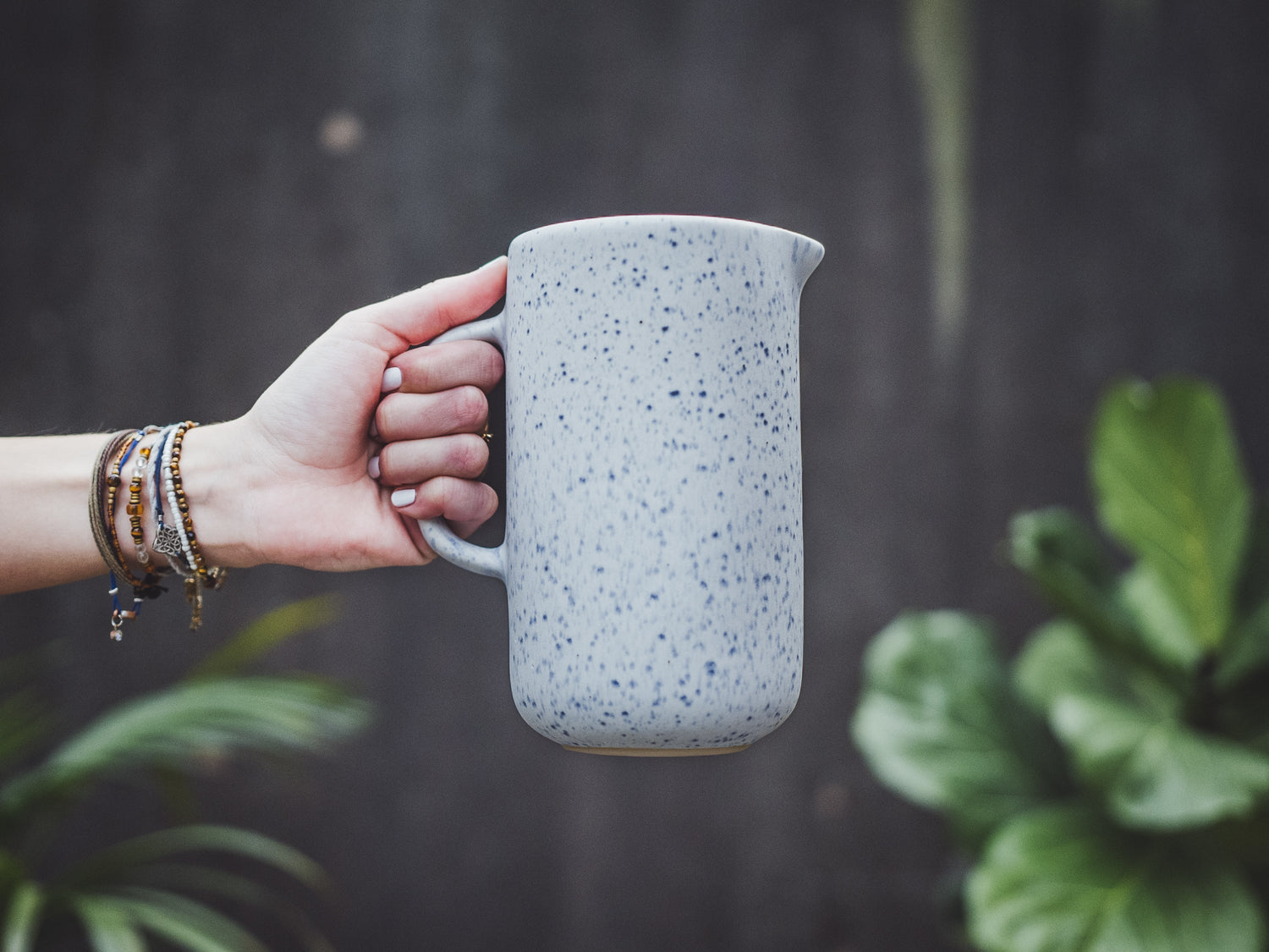 Der Azul Manchado Keramik Krug im matten Weiss und mit feinen blauen Sprenkeln ist ideal für Wasser, Limonade oder Eistee. Mit 1 Liter Fassungsvermögen ist er perfekt für den Alltag und den gedeckten Tisch. Hochwertig verarbeitet und vielseitig einsetzbar – auch als stilvolle Vase für frische oder getrocknete Blumen. Der grosszügige Krug ist ein Highlight auf deinem Tisch und verleiht eine Atmosphäre von mediterranem Flair, Gelassenheit und Eleganz.