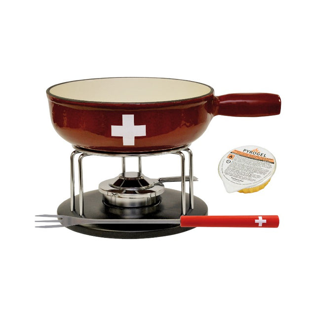 Das stilvolle ALPES Fondue-Set bringt alpines Flair auf Ihren Tisch. Das 9-teilige Set bietet alles für ein traditionelles Käsefondue-Erlebnis: ein robuster Caquelon aus emailliertem Gusseisen für optimale Hitzeverteilung, das formschöne Rechaud Alpes mit Pastenbrenner für sichere Wärmezufuhr und sechs elegante Fonduegabeln für genussvolle Runden mit Familie oder Freunden. Perfekt für gemütliche Winterabende – Schweizer Fonduekultur in ihrer schönsten Form.