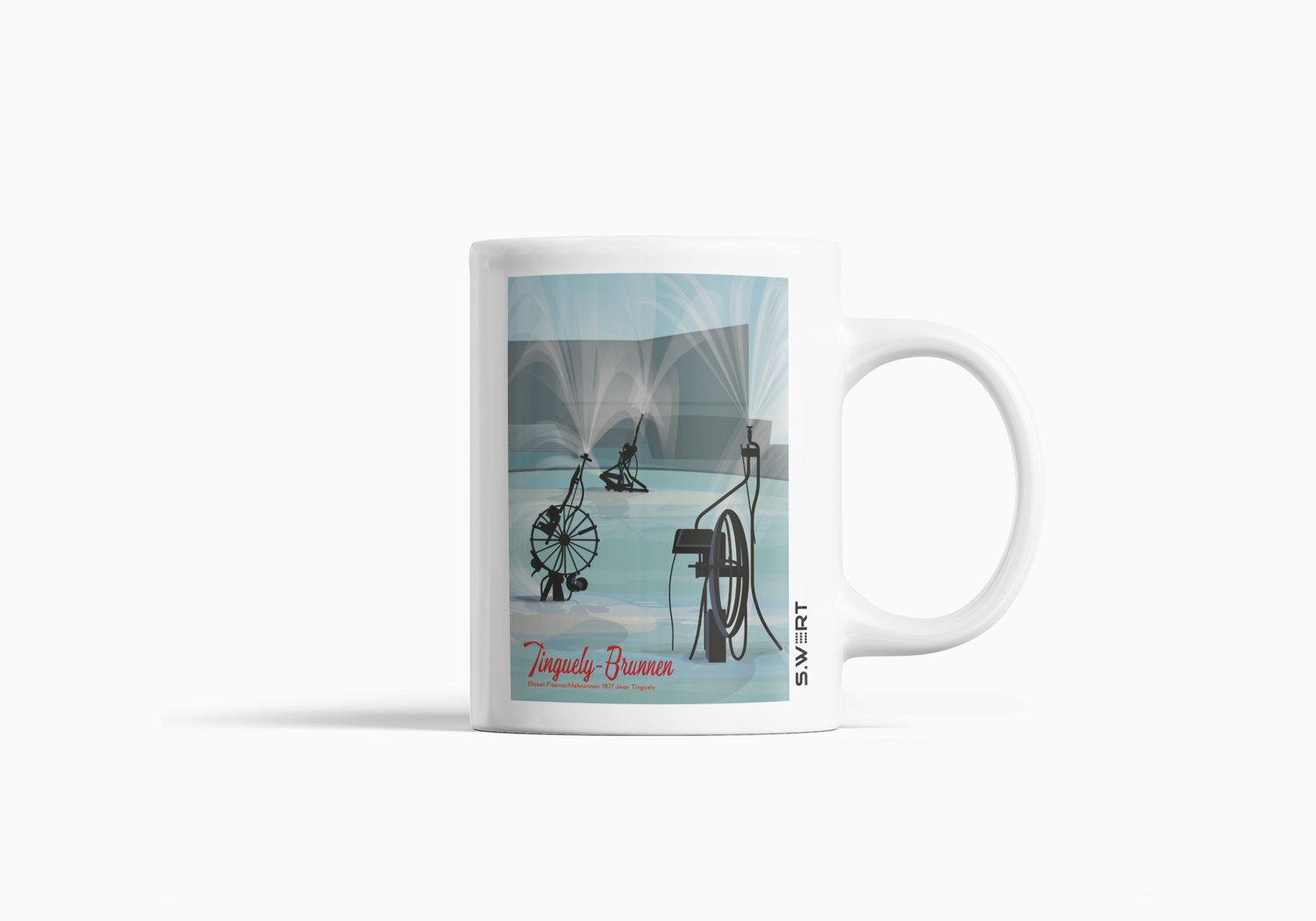 Unsere Tasse mit dem Motiv des Tinguely-Brunnens in Basel fängt die künstlerische Schönheit dieses berühmten Wahrzeichens ein. Ein modernes Design, das die dynamische Bewegung der Skulpturen und die lebendige Atmosphäre des Brunnens zeigt. Perfekt für Kunstliebhaber und Basel-Enthusiasten!